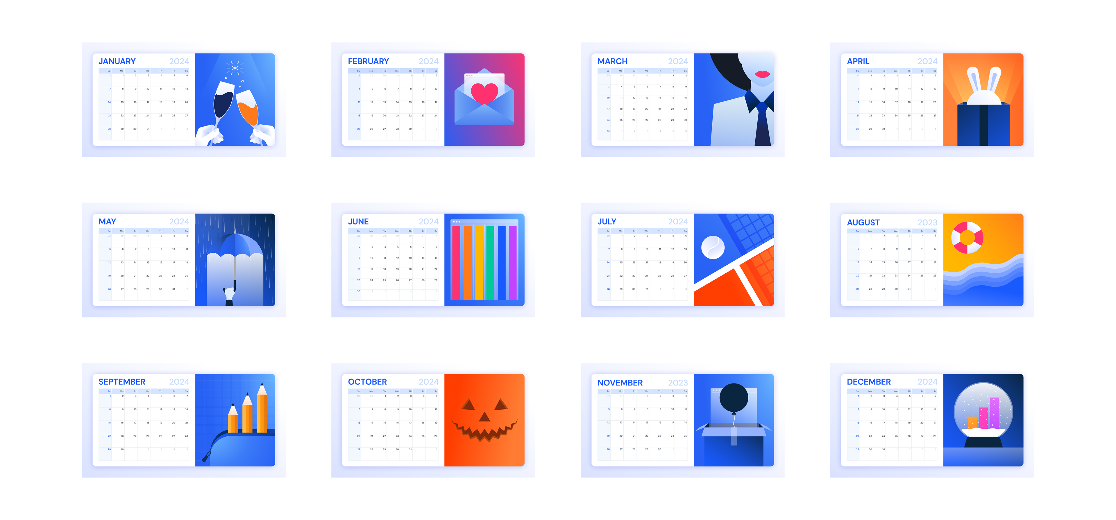 I designed the annual calendar, creating monthly illustrations for key holidays and events.