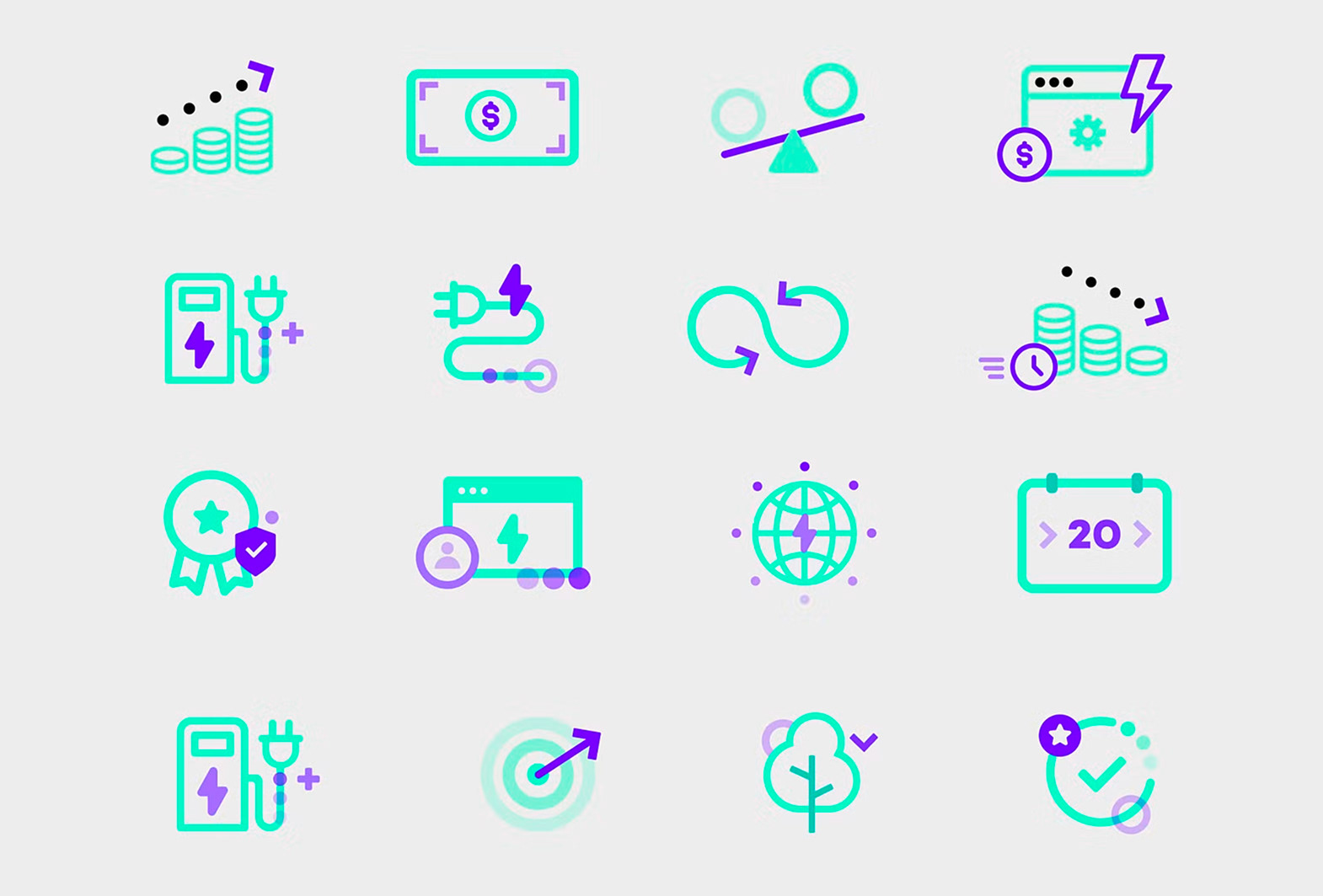 The minimal logo conveys motion and a sense of charging, while the bold, innovative color palette sets the brand apart from competitors, emphasizing energy and sustainability.
